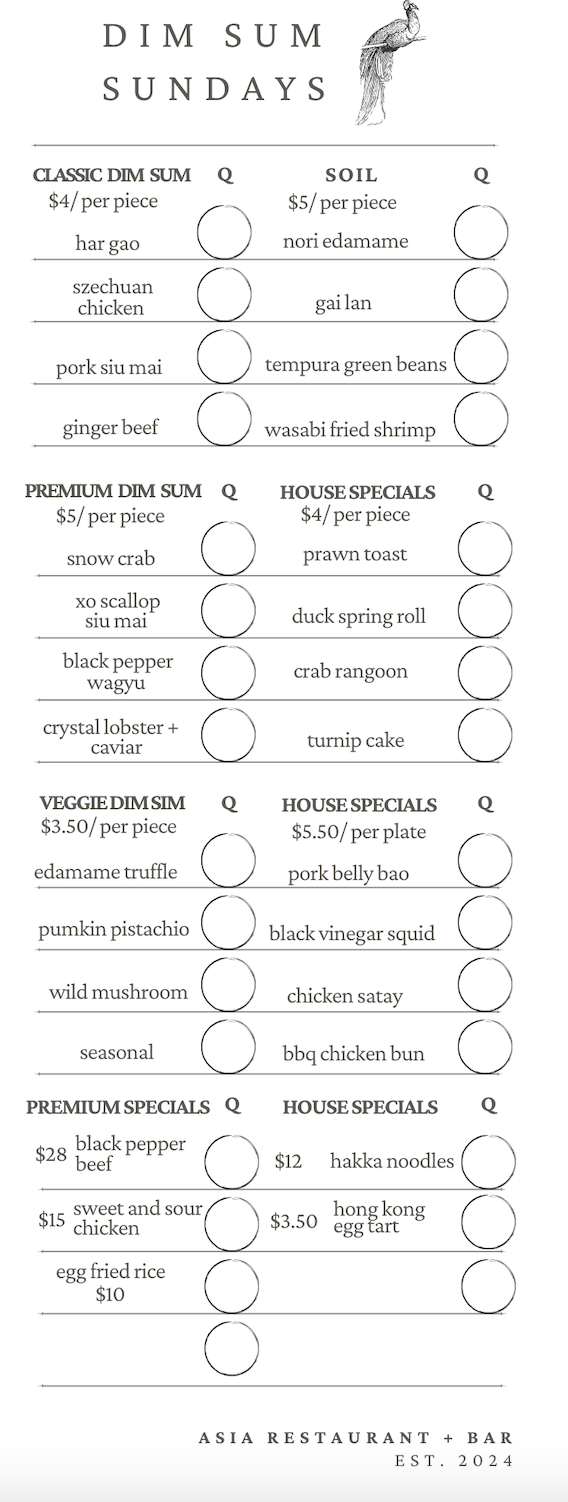 DIM SUM MENU (Served Friday, Saturday & Sunday Only from 11:30am-4pm)